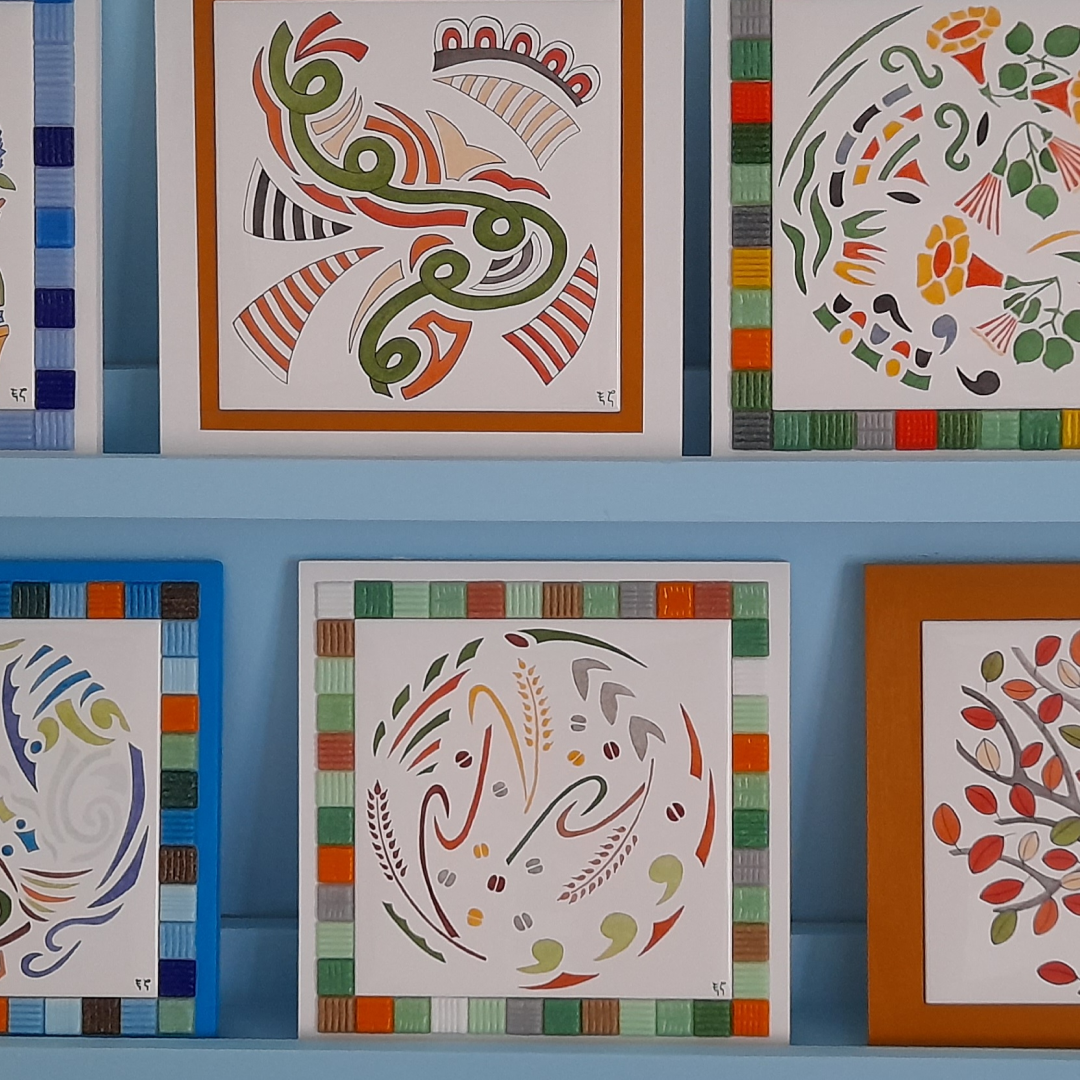 Une fois terminé ce carreau a été inséré dans un cadre en bois fait sur mesure et peint en blanc.