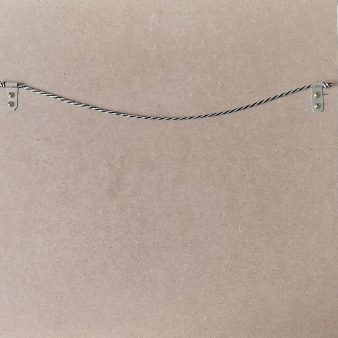 Une fois terminé ce carreau a été inséré dans un cadre de bois fabriqué sur mesure et peint en blanc.