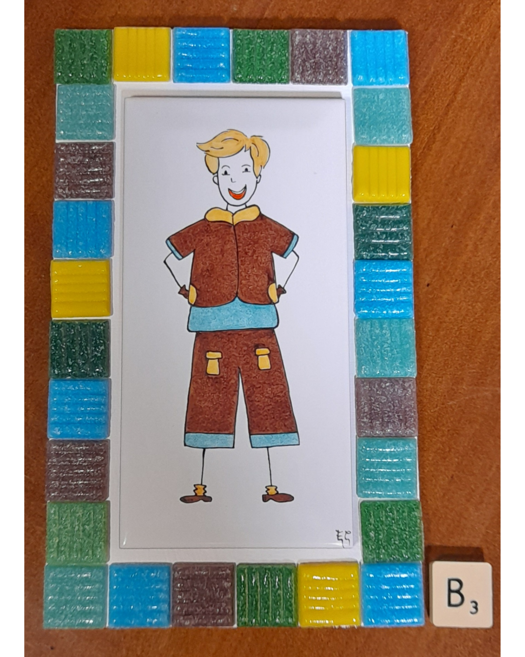 Carreau avec mosaïques ou avec cadre en bois : 8 euros
